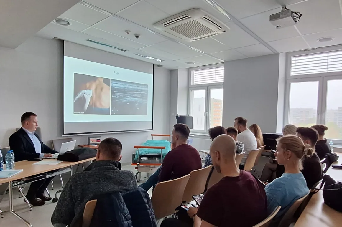 W anestezjologii, oprócz znieczulenia ogólnego, ważną rolę w łagodzeniu bólu okołooperacyjnego odgrywa także znieczulenie miejscowe i regionalne. I właśnie z tego typu znieczuleń odbyły się w naszym szpitalu szkolenia. W dniach 12–13.09, 26–27.09 oraz 10–11.10 w Klinice Anestezjologii i Intensywnej Terapii odbył się cykl kursów poświęconych blokadom regionalnym splotów nerwowych i nerwów obwodowych oraz przedziałowym (technika znieczulenia, w której środek znieczulający jest podawany do konkretnych przetrzeni między mięśniami lub powięziami blokując nerwy w danym obszarze) pod kontrolą USG. Uczestnicy kursu – specjaliści oraz rezydenci anestezjologii – pod czujnym okiem doświadczonych instruktorów z Górnośląskiej Szkoły Ultrasonografii pogłębiali swoją wiedzę teoretyczną oraz doskonalili umiejętności praktyczne w zakresie wykonywania blokad splotów nerwowych i nerwów obwodowych.
