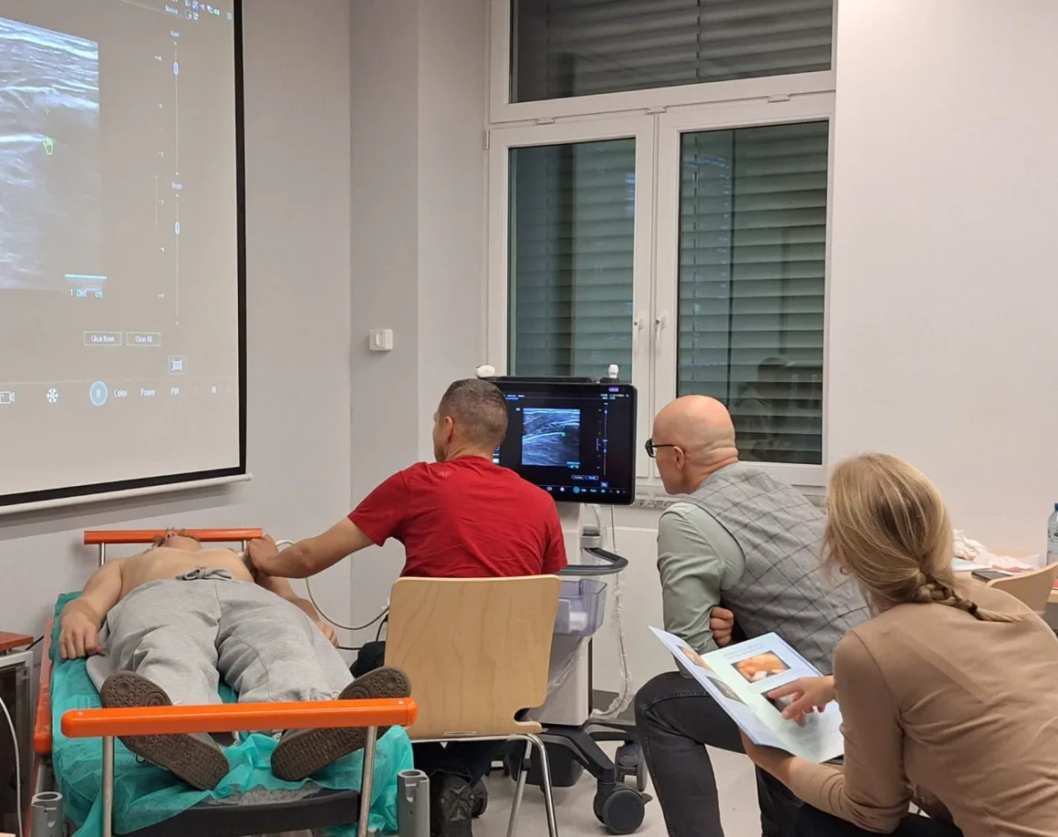 Program kursu obejmował część wykładową oraz praktyczną, podczas której przedstawiono anatomię ultrasonograficzną, omówiono techniki wykonywania poszczególnych blokad oraz zasady bezpieczeństwa i aseptyki. Ćwiczenia praktyczne odbywały się z udziałem modeli – (identyfikacja struktur) – oraz z użyciem fantomów, na których uczestnicy doskonalili umiejętność prowadzenia igły pod kontrolą USG.