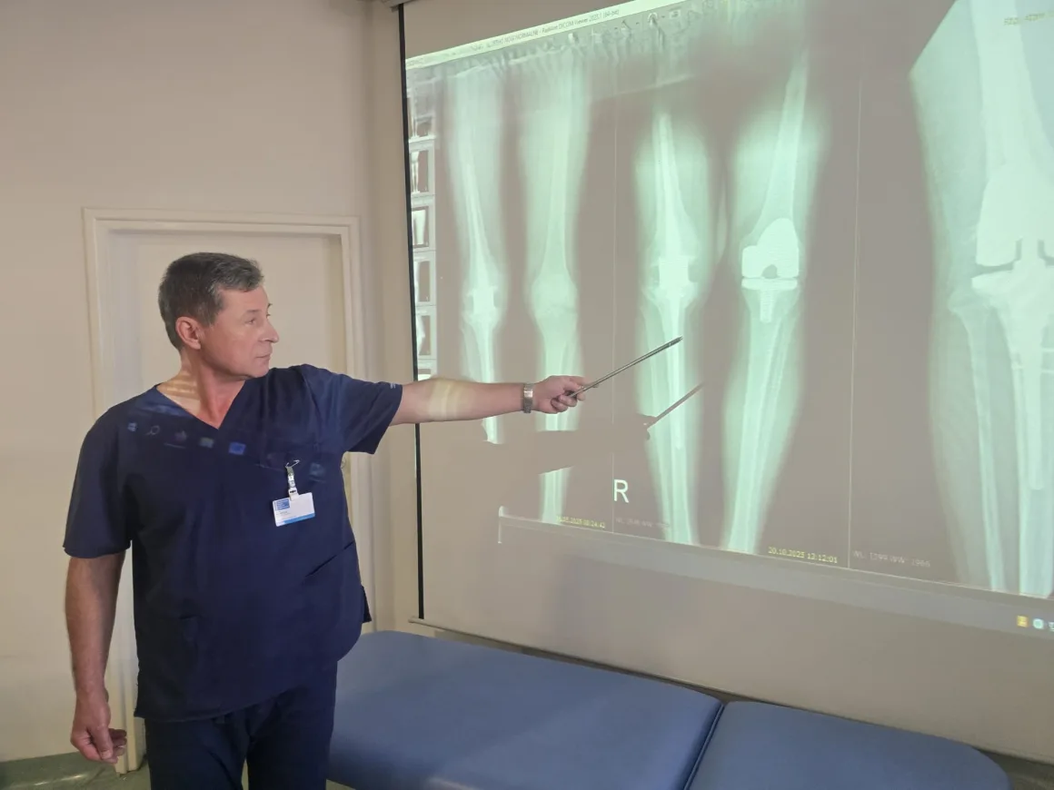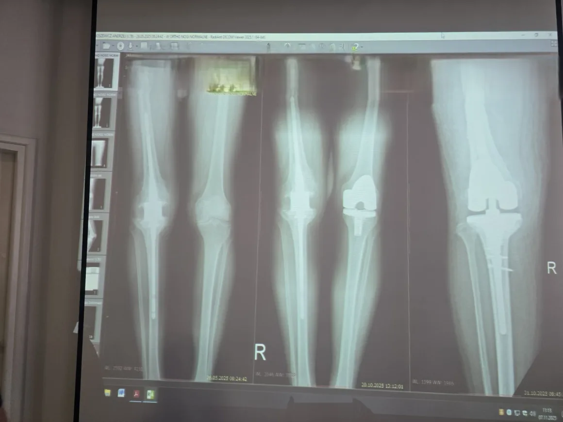 – Pacjent nie mógł chodzić, skarżył się na ból, miał zaburzenia biomechaniki chodu – opowiada dr Jan Kiryluk, lekarz kierujący Kliniką Ortopedii USK.- Po analizie tego przypadku, po określeniu ewentualnych powikłań, pacjent się zgodził na operację w tym nawet na ewentualną amputację nogi, bo jak uznał to lepsze niż chodzenie na wyprostowanym stawie kolanowym dla osoby aktywnej.