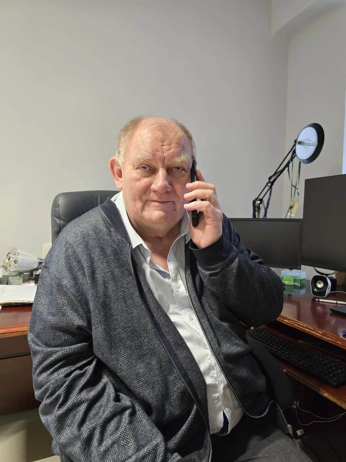 Na zdjęciu: prof. Sławomir Wołczyński dzwoni do Magdy, by złożyć jej życzenia w rocznicę jej urodzin.