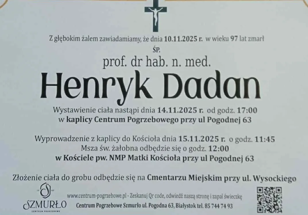 Jednocześnie składamy wyrazy współczucia prof. Jackowi Dadanowi, kierownikowi I Kliniki Chirurgii Ogólnej i Endokrynologicznej UMB z powodu śmierci Taty.