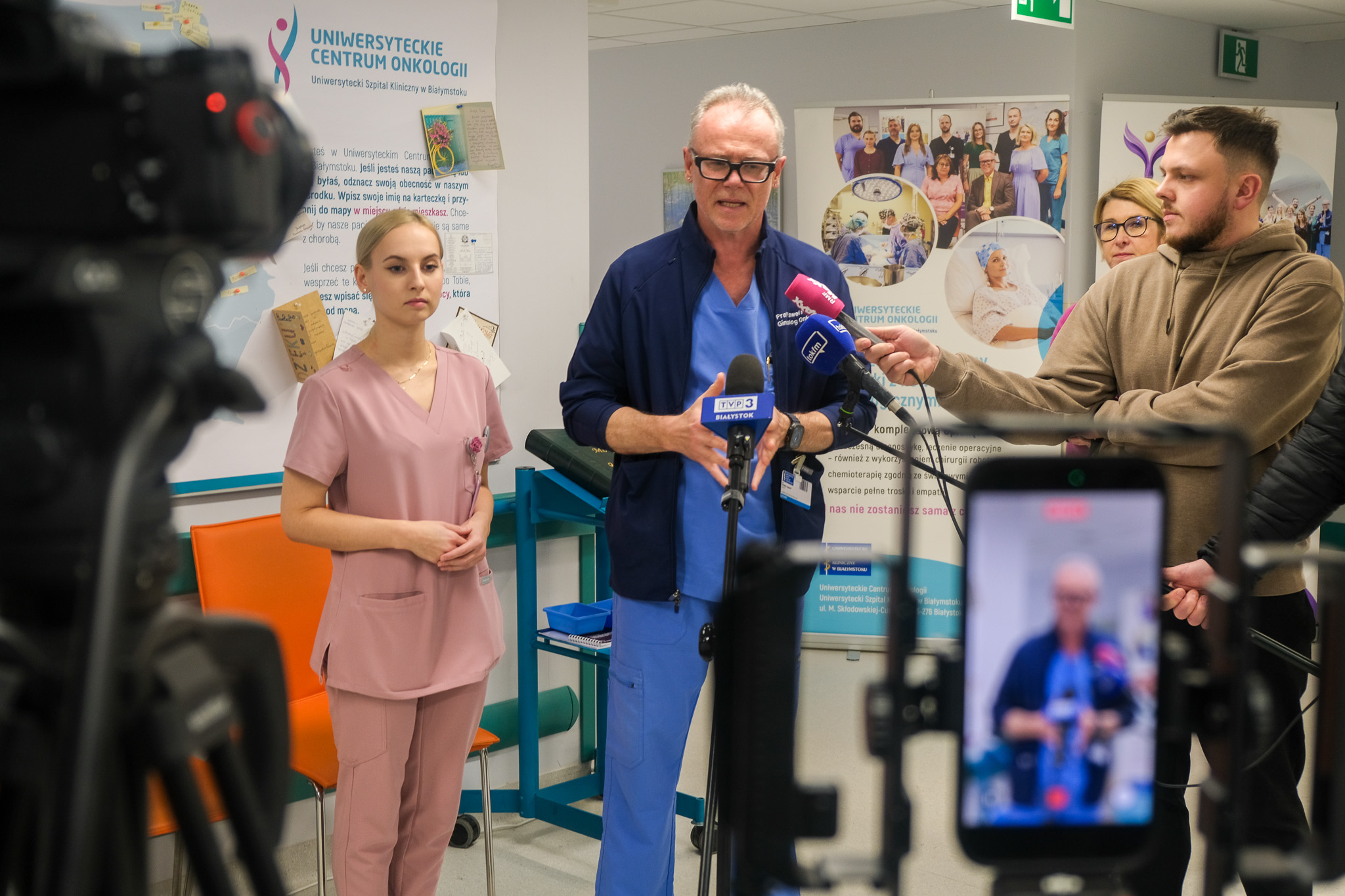 – W naszej Poradni Ginekologicznej realizujemy Narodowy Program Profilaktyki Raki Szyjki Macicy – mówiła Oliwia Klimek. – Na badanie mogą zapisać się Panie między 25. a 64. rokiem życia. Nie potrzebują skierowania. Mogą zapisać się przez internetowo przez Internetowe Konto Pacjenta (IKP), bezpośrednio w rejestracji Poradniki Ginekologicznej, telefonicznie, mailowo.  Badanie ma na celu nie tylko, tak jak profesor już mówił, wykrycie nowotworów szyjki macicy, ale też stanów przednowotworowych i przede wszystkim ocenę ryzyka. Więc serdecznie chciałabym zaprosić wszystkie kobiety. Natomiast jeżeli chodzi o panie, które są pełnoletnie, ale przed 25. rokiem życia i panie, które mają powyżej 64 lat, również zapraszamy do nas na badanie. W ramach naszej poradni oferujemy wtedy badanie cytologiczne metodą konwencjonalną.