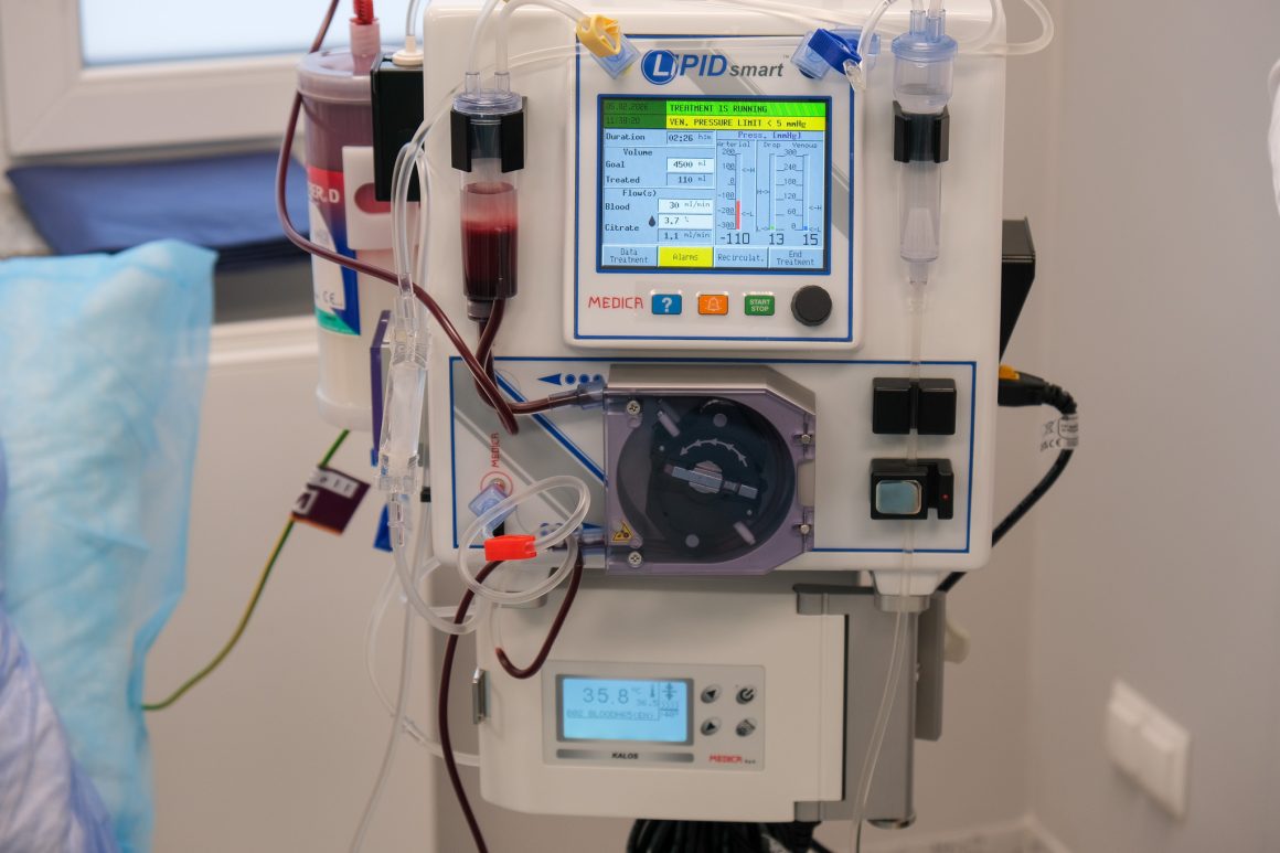 Aparat do aferezy został zakupiony do Kliniki Kardiologii, Lipidologii i Chorób Wewnętrznych z OINK w Uniwersyteckim Szpitalu Klinicznym w Białymstoku – przy ul. Żurawiej. Jest to nowa technika, która dotychczas w makroregionie nie była dostępna. Do tej pory pacjenci musieli szukać ratunku w Gdańskim Uniwersytecie Medycznym lub w Instytucie Kardiologii w Aninie pod Warszawą. Na czym polega zabieg aferezy, tłumaczyła w czwartek 5 lutego podczas konferencji prasowej prof. Anna Tomaszuk-Kazberuk, kierownik Kliniki Kardiologii, Lipidologii i Chorób Wewnętrznych z OINK.